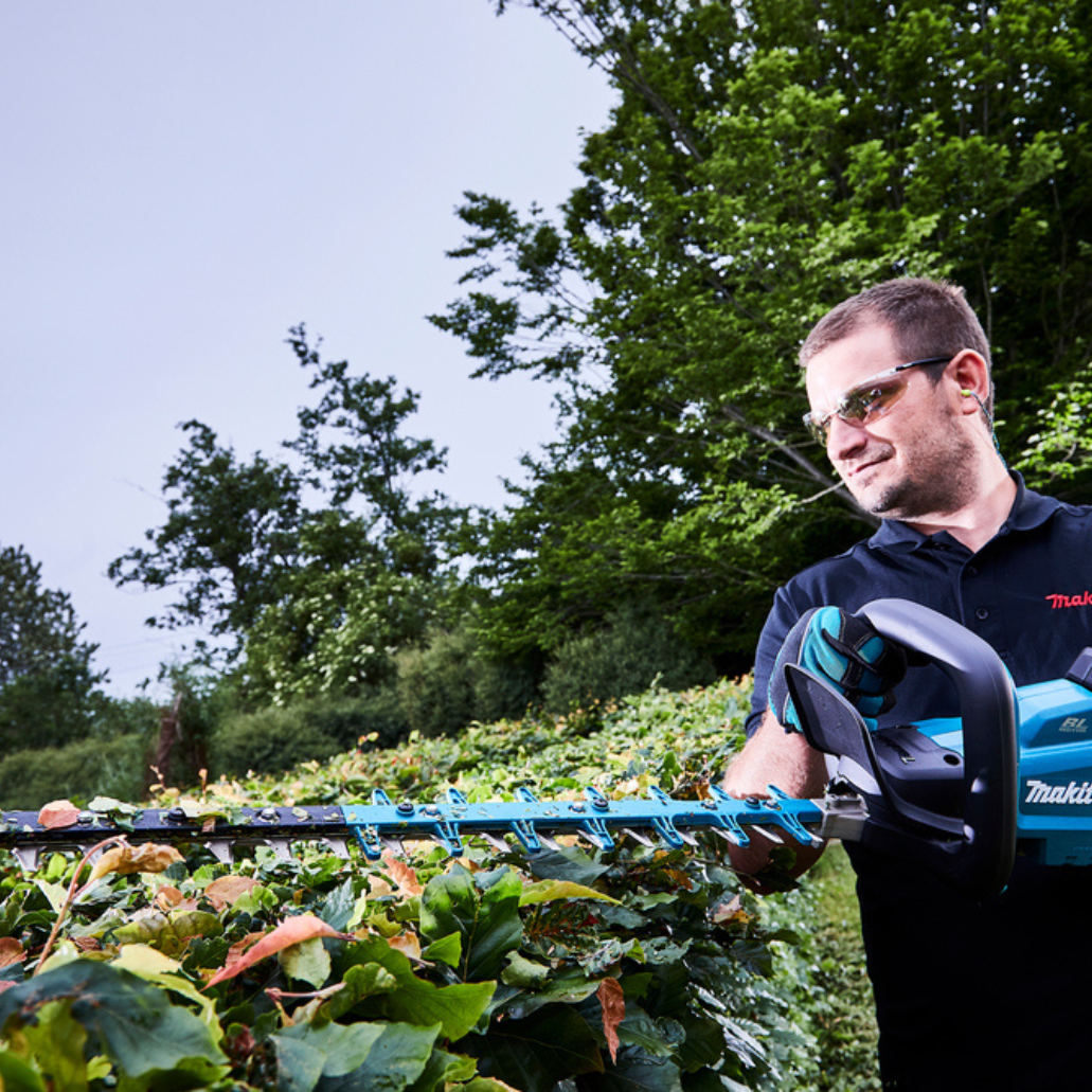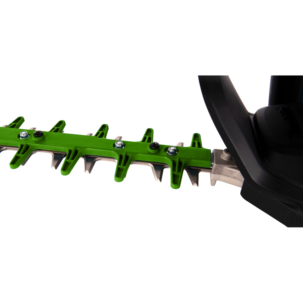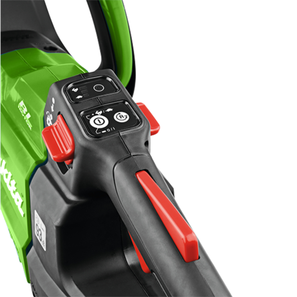 El cortasetos cuenta con una velocidad variable controlada por dial que permite adaptar las revoluciones a la aplicación a realizar, así como un interruptor de seguridad que requiere el uso de ambas manos para su funcionamiento, garantizando la máxima seguridad para el usuario.