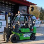 Las carretillas elevadoras de las delegaciones de Navarra y Álava han podido acompañar a la carrera en varias de sus etapas, ayudando con la puesta a punto de distintos aspectos del evento como el vallado de seguridad y preparación del pódium de meta.