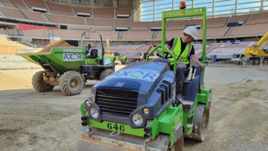 Manipuladores telescópicos, dumpers y rodillos se están encargando de que la nivelación y drenaje del terreno de juego sean óptimos.